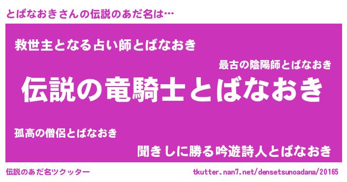| ヒーロー風カッコイイあだ名 | 『スーパートバナオキ』『仮面トバダー』 |
