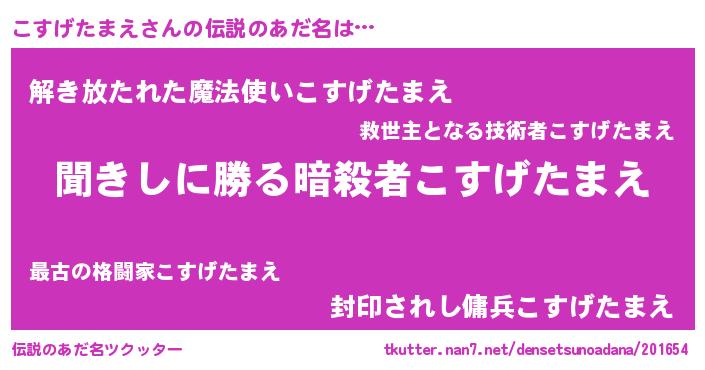 | 意味不明あだ名 | 『自称こすげたまえ』 |