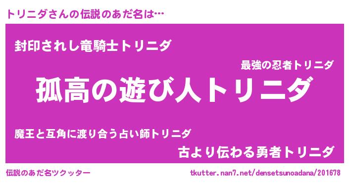 | ヒーロー風カッコイイあだ名 | 『暗黒騎士トリ』『スーパートリニダ』 |