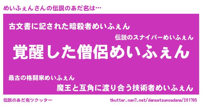 | 意味不明あだ名 | 『とにかく怪しいめいふぇん』 |