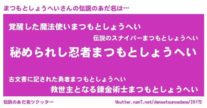 | ファンタジー風あだ名 | 『エターナルマツモトショウヘイー』 |