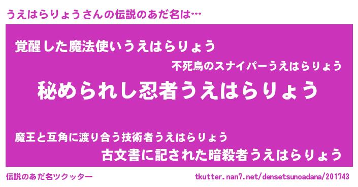 | 意味不明あだ名 | 『自称うえはらりょう』 |