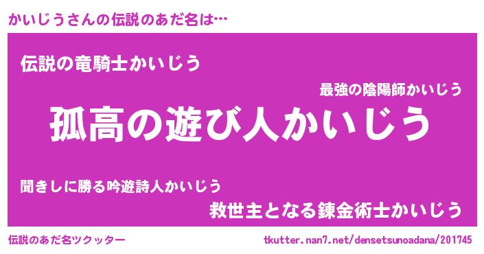 | 意味不明あだ名 | 『住所不定無職かいじう(93歳)』 |