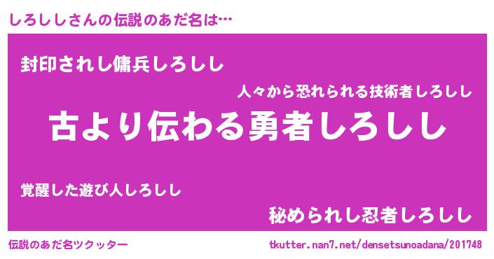 | ヒーロー風カッコイイあだ名 | 『ネオシロシシ』『スーパーシロシシ』 |