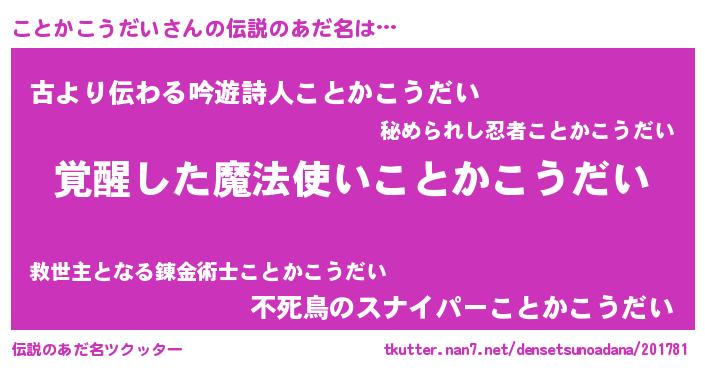 | 胡散臭い通販商品みたいなあだ名 | 『全米が絶賛したサプリメント…その名も「ことかこうだい」』 |