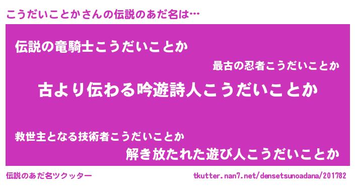 | ヒーロー風カッコイイあだ名 | 『ネオコウダイコトカ』『仮面コウダー』 |