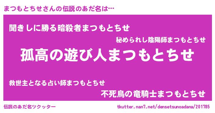 | 意味不明あだ名 | 『とにかく怪しいまつもとちせ』 |