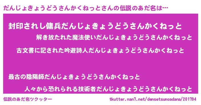 | ヒーロー風カッコイイあだ名 | 『ネオダンジョキョウドウサンカクネット』 |