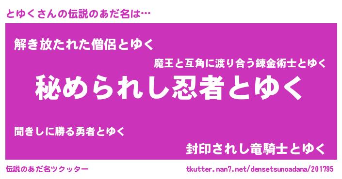 | ポケモン風あだ名 | 『トユクダネ』『ヒトユク』 |