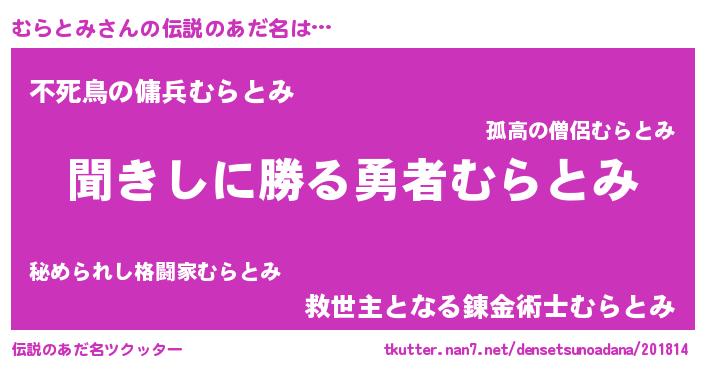| 胡散臭い通販商品みたいなあだ名 | 『絶対に幸福をもたらす水素水…その名も「むらとみ」』 |
