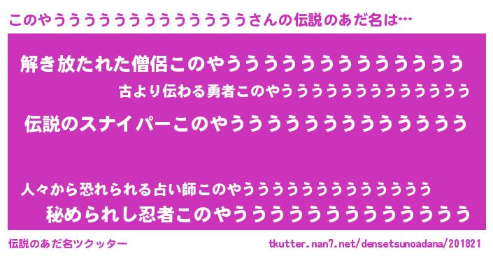 | 女子向けラノベタイトル風あだ名 | 『(仮)このやうううううううううううううのやんごとなき事情』 |