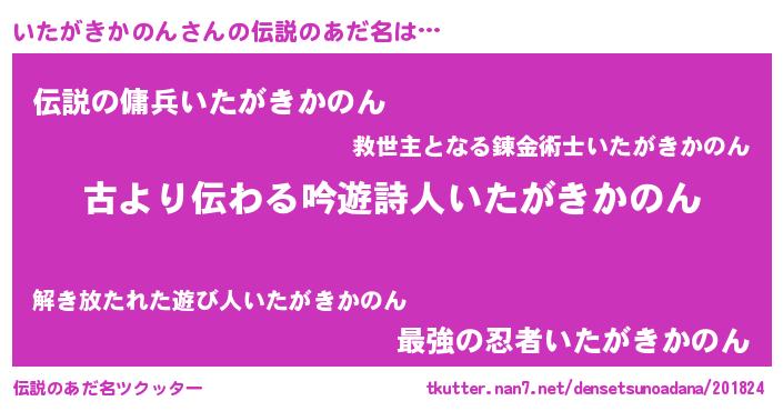 | 胡散臭い通販商品みたいなあだ名 | 『テレビで話題の高麗人参…その名も「いたがきかのん」』 |