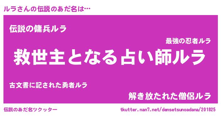 | ヘコむあだ名 | 『ルラにゅー』『ルラを』『レバニラ』 |
