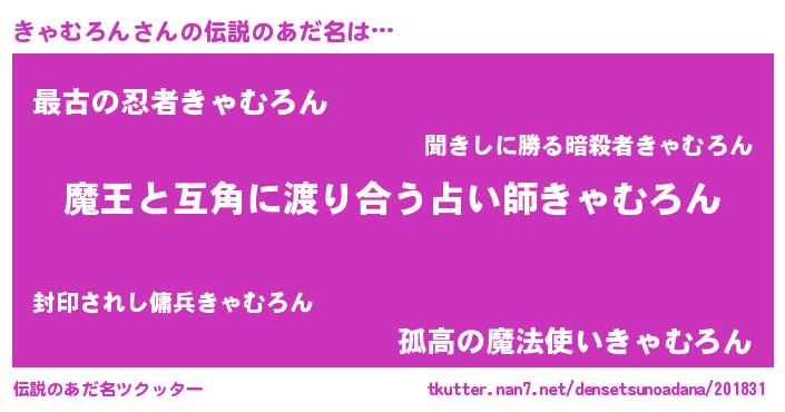 | 女子向けラノベタイトル風あだ名 | 『きゃむろん恋絵巻』 |