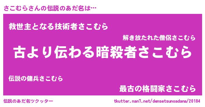| 意味不明あだ名 | 『永久保存さこむら』 |