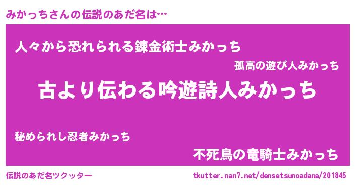 | ヒーロー風カッコイイあだ名 | 『ネオミカッチ』『超時空戦士ミカッチ』 |