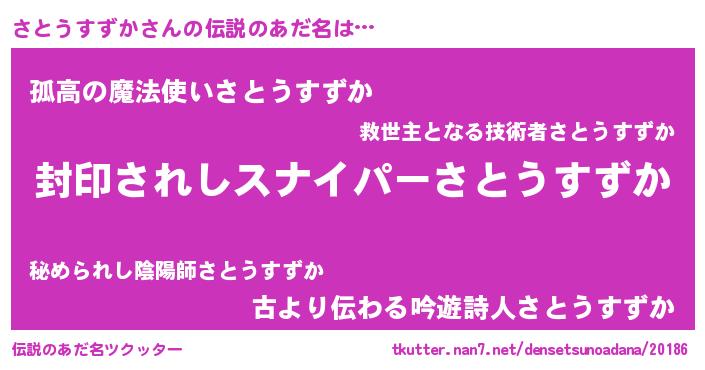 | 意味不明あだ名 | 『住所不定無職さとうすずか(85歳)』 |