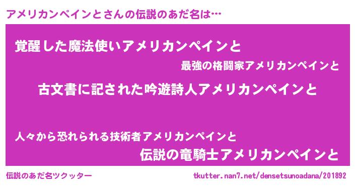 | 意味不明あだ名 | 『永久保存アメリカンペインと』 |