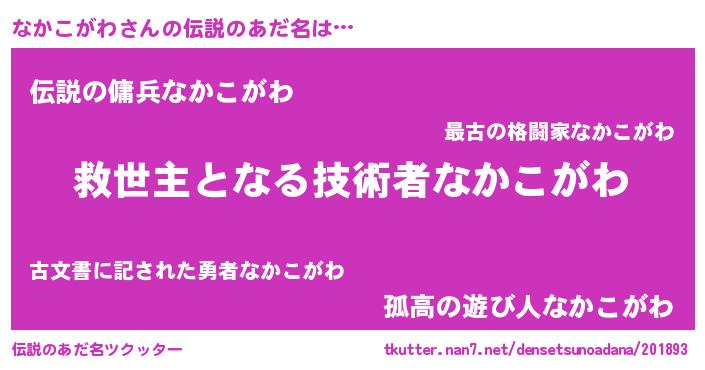 | ヒーロー風カッコイイあだ名 | 『天空の使者なかこがわ』『仮面ナカダー』 |