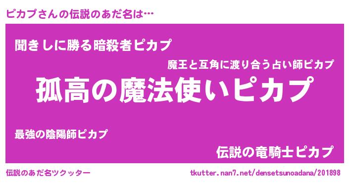 | ポケモン風あだ名 | 『ヒピカプ』『ピーカイ』『ピカゴンZ』 |