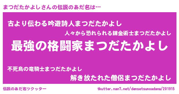 | 意味不明あだ名 | 『まつだたかよしフォーエバー』 |