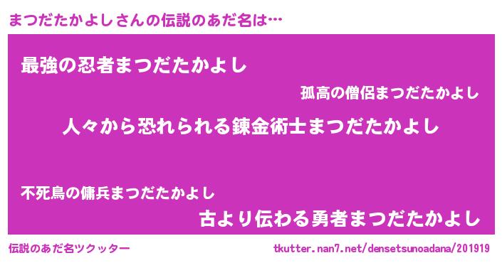 | ヒーロー風カッコイイあだ名 | 『正義の使者まつだたかよし』 |
