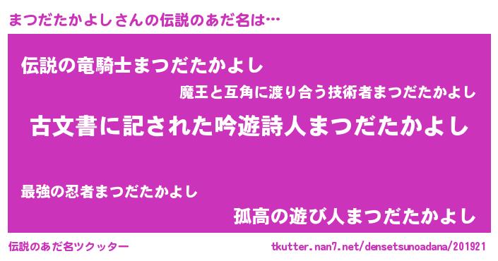 | 意味不明あだ名 | 『自称まつだたかよし』 |