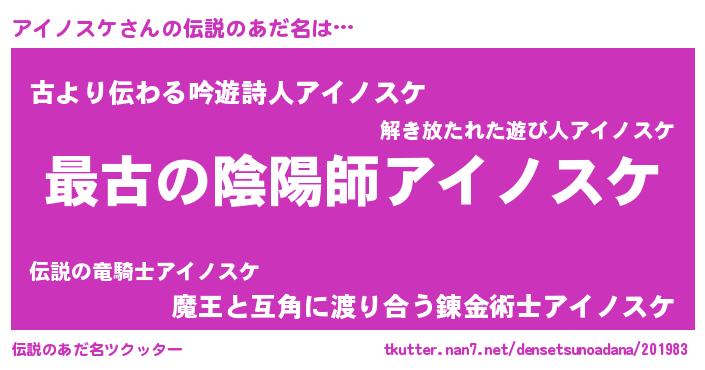 | 意味不明あだ名 | 『アイノスケフォーエバー』 |