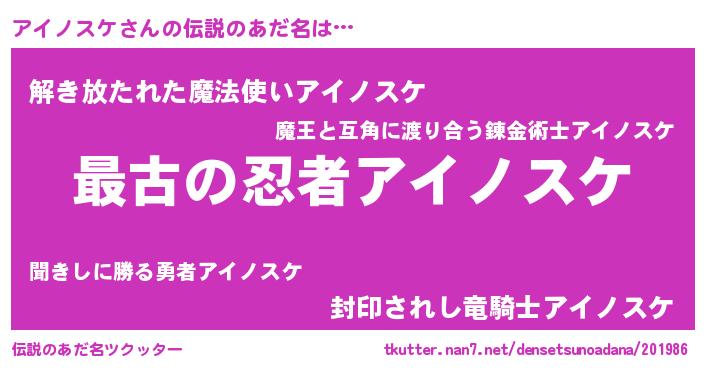 | ファンタジー風あだ名 | 『エターナルアイノスケー』『ゼアイトゥ』 |