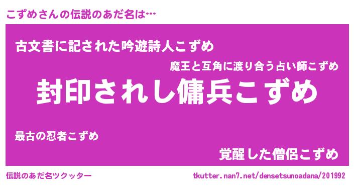 | 胡散臭い通販商品みたいなあだ名 | 『億万長者になれる水晶球…その名も「こずめ」』 |