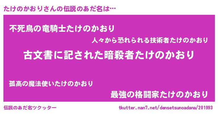 | 意味不明あだ名 | 『住所不定無職たけのかおり(39歳)』 |