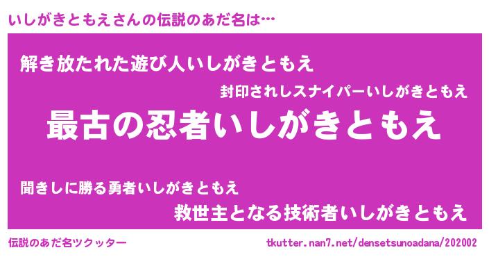 | ファンタジー風あだ名 | 『エターナルイシガキトモエー』 |