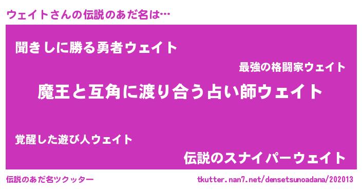 | ヒーロー風カッコイイあだ名 | 『友情の使者ウェイト』『仮面ウェダー』 |