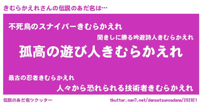 | 男性向けラノベタイトル風あだ名 | 『ダンジョンにきむらかえれを求めるのは間違っているだろうか』 |