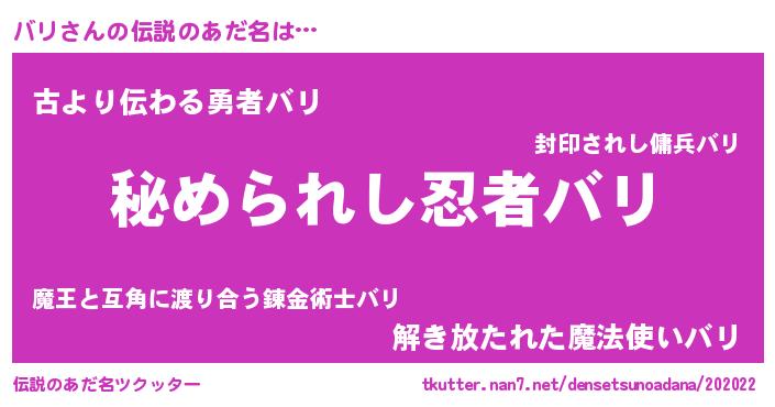 | 意味不明あだ名 | 『自称バリ』『バリフォーエバー』 |
