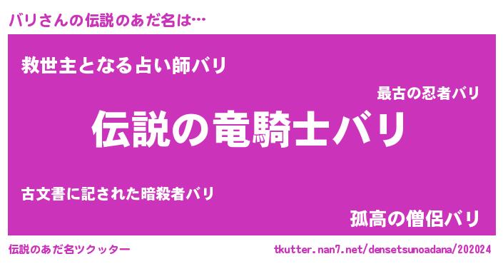 | 男性向けラノベタイトル風あだ名 | 『バリスレイヤー』『バリの憂鬱』 |