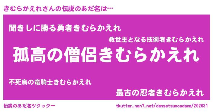 | 意味不明あだ名 | 『とにかく怪しいきむらかえれ』 |