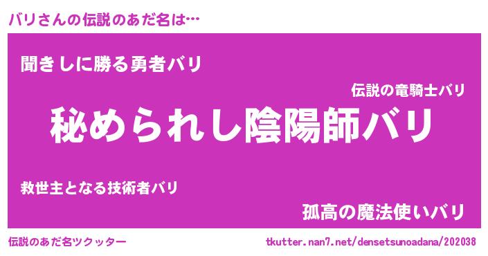 | 男性向けラノベタイトル風あだ名 | 『魔法科高校のバリ』 |