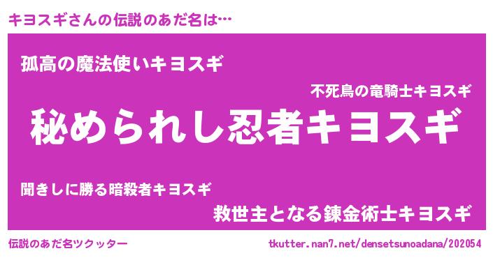 | 意味不明あだ名 | 『自称キヨスギ』『キヨスギフォーエバー』 |