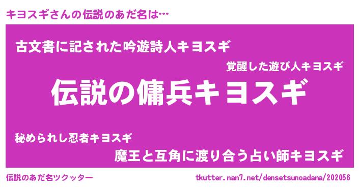 | 男性向けラノベタイトル風あだ名 | 『キヨスギの憂鬱』 |