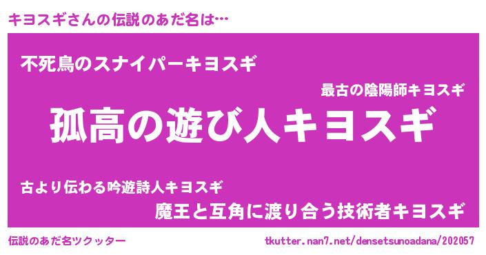 | ファンタジー風あだ名 | 『ファントムキヨス』『ヴァルキヨーナ』 |