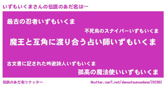 | ヒーロー風カッコイイあだ名 | 『友情の使者いずもいくま』 |