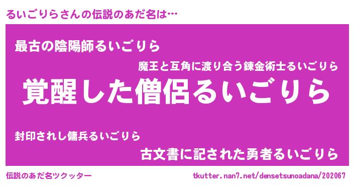 | ヒーロー風カッコイイあだ名 | 『幻影騎士ルイ』『最強戦士ルイゴリラ』 |