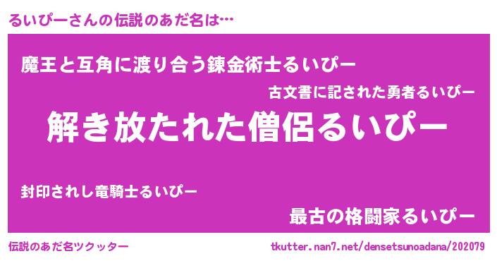 | 男性向けラノベタイトル風あだ名 | 『魔弾の王とるいぴー』 |