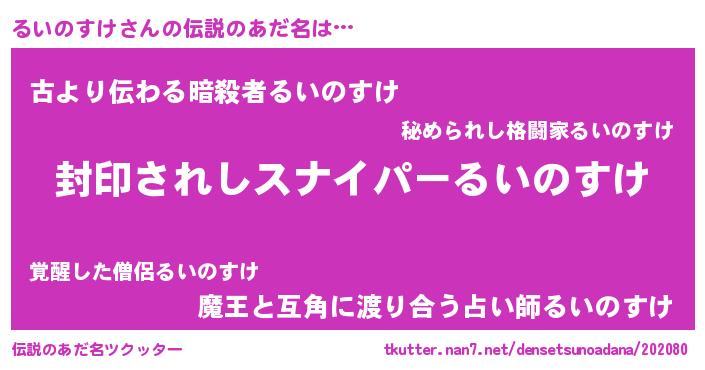 | 意味不明あだ名 | 『ペロリンるいのすけ』『自称るいのすけ』 |