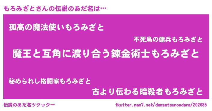 | 女子向けラノベタイトル風あだ名 | 『もろみざと恋絵巻』 |