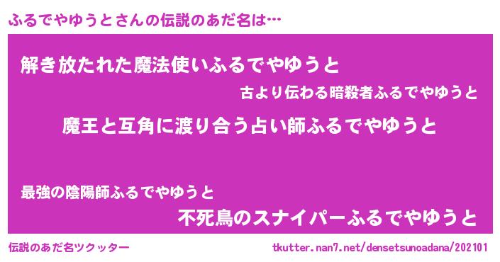 | 意味不明あだ名 | 『眠気覚ましガムふるでやゆうと味』 |