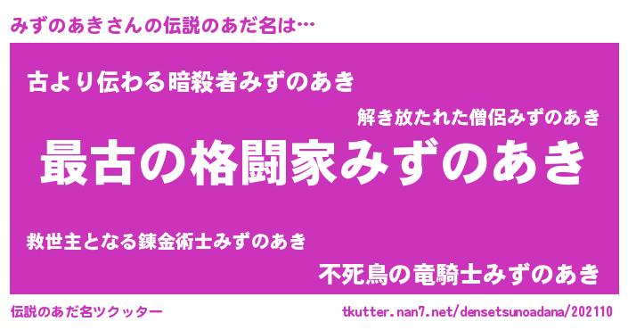 | 意味不明あだ名 | 『みずのあきフォーエバー』 |