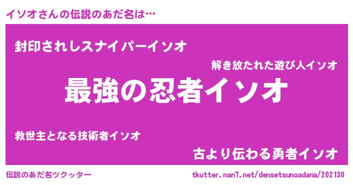 | ファンタジー風あだ名 | 『ヴァルイソーナ』『エターナルイソオー』 |