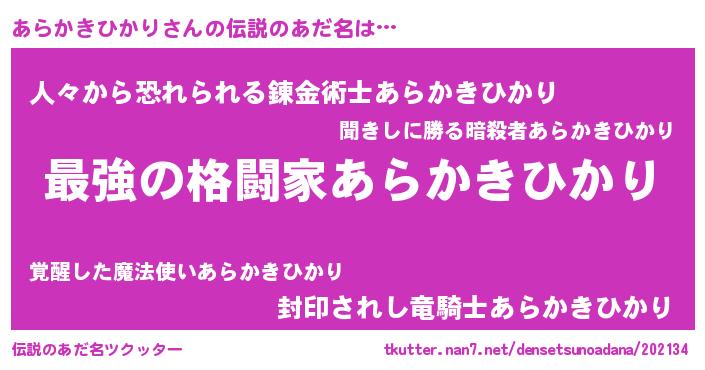 | ファンタジー風あだ名 | 『エターナルアラカキヒカリー』 |
